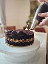 Spritsa på chokladganachen och dekorera med kokosflakes och/eller något annat som du tycker är fint. Det kan vara t ex några bär eller frukt, en maräng eller ännu mer choklad.