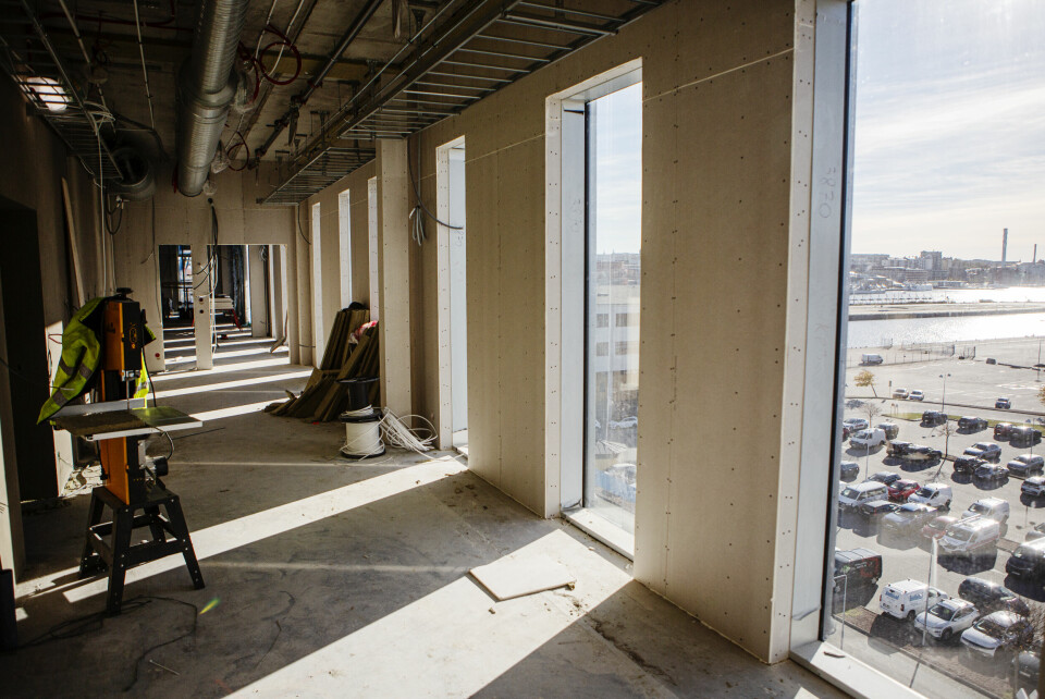 Det han inte vet om Frihamnskyrkan och om projektets olika faser sedan det första högtidliga spadtaget i maj 2021, är inte värt att veta. Med bygghjälmar på våra huvuden guidar han oss vant i byggnaden, som till det yttre är kubformad och där arbetet med att klä delar av fasaden i trä återstår.