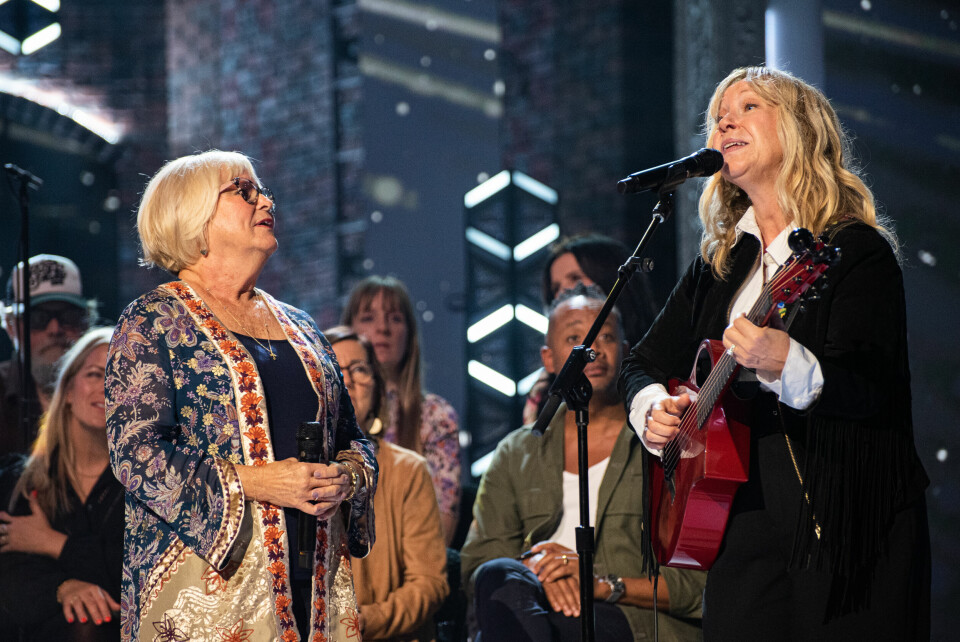 Maria Gustin Bergström kramar om Michael Jeff Johnson efter hans känslofyllda framträdande i Nashvilleinspelningen av tv-serien 'Alla tiders sånger' (november 2022).