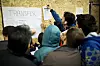 Frida Temple arbetar på det tillfälliga flyktingboendet Ursvik i Stockholms förort.