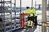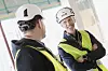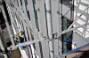 Väl inne i byggnaden pågår arbetet med full kraft. Likt viga katter utför byggarbetarna – enligt Kjell Bramwall rör det sig om ett 70-tal personer dagligen – sina olika uppgifter. Ofta flera meter upp i luften på en stege eller byggställning. Med små åthävor och stor precision utför de sitt viktiga arbete.