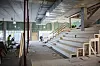 Den goda akustiken är säkrad bland annat tack vare de rektangulära plattor, i varierande storlek och djup, som placerats högst uppe i taket.