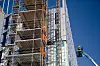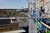 Vid själva byggarbetsplatsen, som omgärdas av stängsel, pågår arbetet för fullt. Över alltihop sträcker sig en byggkran upp mot skyn. Likt en hök vakar den över hela byggprojektet och skänker platsen ett visst lugn.