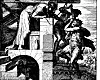 Rahab hjälper spionerna från Israels folk att lämna staden Jeriko i en trärelief av Julius Schnorr von Carolsfeld (1860).