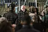 David Lega (KD) talar utanför Malmö synagoga vid manifestationen till minne av Kristallnatten på lördagen. Foto: Johan Nilsson / TT /
