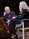 Karl Ove Knausgård samtalar med domprost Kristin Moen Saxegaard.
