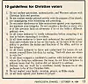 Det ska sägas, att alldeles enkelt är det inte att se igenom påverkansoperationer, snaror, trojanska hästar. Men det är inte heller något nytt. Några kristna som ogillar utvecklingen i USA lade nyligen upp en lista på Threads från Pentecostal Evangel den 14 oktober 1984 med rubriken: ”10 guidelines for Christian voters” [Tio riktlinjer för kristna väljare]: