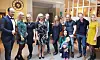 Elinor Tidholm med sina sju biologiska barn. Från vänster: Niklas (svärson), Greta och Linnéa (tvillingar), Elinor (mamman), Alf, Kerstin, Hannele (sittande svärdotter med sonen Eton), Gustav, Gregor och Emeli.