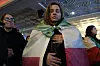 En kvinna insvept i Lejonet och solen, Irans flagga fram till den islamiska revolutionen 1979, sörjer de många omkomna i proteströrelsen, en bild tagen från en manifestation i Kanada.