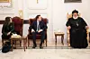 Från vänster: Jessica Svärdström, chargé d'affaires vid svenska ambassaden i Damaskus, Sveriges biståndsminister Benjamin Dousa (M) och den syrisk-ortodoxe patriarken Ignatius Afrem II.
