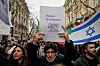Israelisk flagga syns under en marsch i Paris till stöd för protesterna i Iran under den gångna helgen. ”Pahlavi ska återvända”, står det på pappret, vilket hänvisa till en av den iranska oppositionens frontfigurer i exil, Reza Pahlavi, som är son till den siste shahen av Iran.