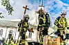 Man gnuggar sig nästan för ögonen, för det är en väldigt ovanlig och kontrastfylld bild då brandmännen bär ut korset medan Sjösås kyrka är på väg att brinna ner. Fotografen David Johansson prisas nu för bilden.