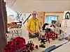 Anette Lövestig dukar upp juliga inredningsdetaljer inför EFK:s marknad Höstglöd på Torp.