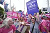 Anhängare till organisationen Dignity in dying (värdigt döende) firar i London efter att underhuset röstat igenom ett lagförslag om assisterat döende.