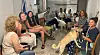Grannarna samlade i skyddsrummet i huset i centrala Tel Aviv där Dagens korrespondent bor.