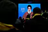 Hizbollahanhängare i Beirut lyssnar till ett tal av Hizbollahledaren Hassan Nasrallah via videolänk den 6 mars 2023. Samma dag meddelade Hassan Nasrallah att Hizbollah stöttar Suleiman Frangieh i presidentvalet.