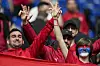 Åskådare gör tre fingerhälsningen inför en match mellan Serbien och England sommaren 2024.