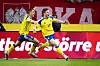 Gustaf Lagerbielke och Viktor Gyökeres firar Sveriges seger över Polen i den avgörande kvalmatchen till fotbolls-VM