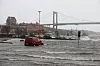 Ovädret Dave drog in över västkusten under söndagen och orsakade bland annat översvämningar i Göteborgs hamn.