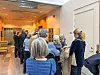 Åhörare väntar på att bli insläppta i rättssalen i Västerås tingsrätt vid den aktuella förhandlingen.