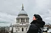 En ung kvinna utanför St. Paul's Cathedral i London. En rapport i England slog fast att rekordmånga unga vuxna börjat gå regelbundet i kyrkan, men nu drar det brittiska bibelsällskapet tillbaka rapporten då det statistiska underlaget inte gick att lita på.