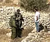 Israeliska soldater visar order om ”stängt militärt område” för olivplockande volontärer på Västbanken.