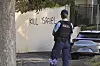 En polis vid en plats i Sydney, Australien, där det sprejats ett antisemitiskt budskap. Bilden är tagen den 11 december förra året.