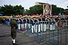 En marschorkester i Guatemala City med en standar föreställande jungfru Maria och Jesusbarnet väntar på att firandet av landets nationaldag ska inledas.