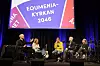 Equmeniakyrkans vinterkonferens 2026, med Marcus Lind, Niklas Piensoho och Karin Wiborn på scenen för att berätta om sina visioner tjugo år in i framtiden.