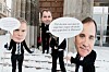 Klädde ut sig för vapenprotester En rad organisationer radade upp sig utanför riksdagen, iförda stora politikeransikten för att påminna om vad de sagt tidigare om vapenexport. 2018-03-01